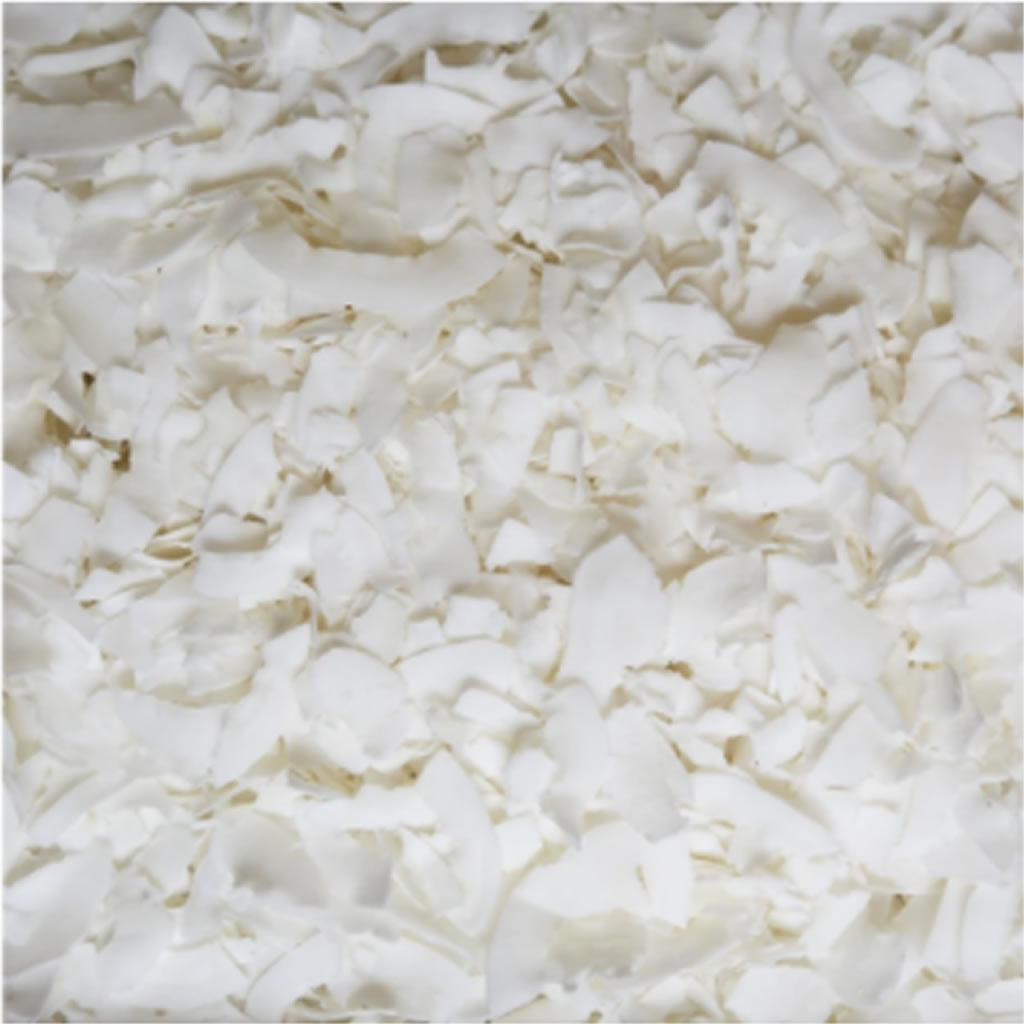 Desiccated coconut is simply fresh coconut meat that has been grated and dried. It is available either ground into flour or in various cut sizes (fine (aka Macaroon), medium, and large flakes) as well as different thicknesses. We call our thicker flakes “chips” and offer them in a raw, toasted, or toasted & sweetened version.